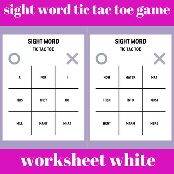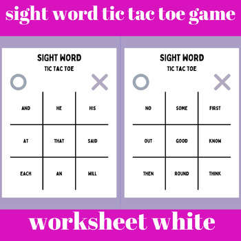 sight word tic tac toe game worksheet white and purple simple style
